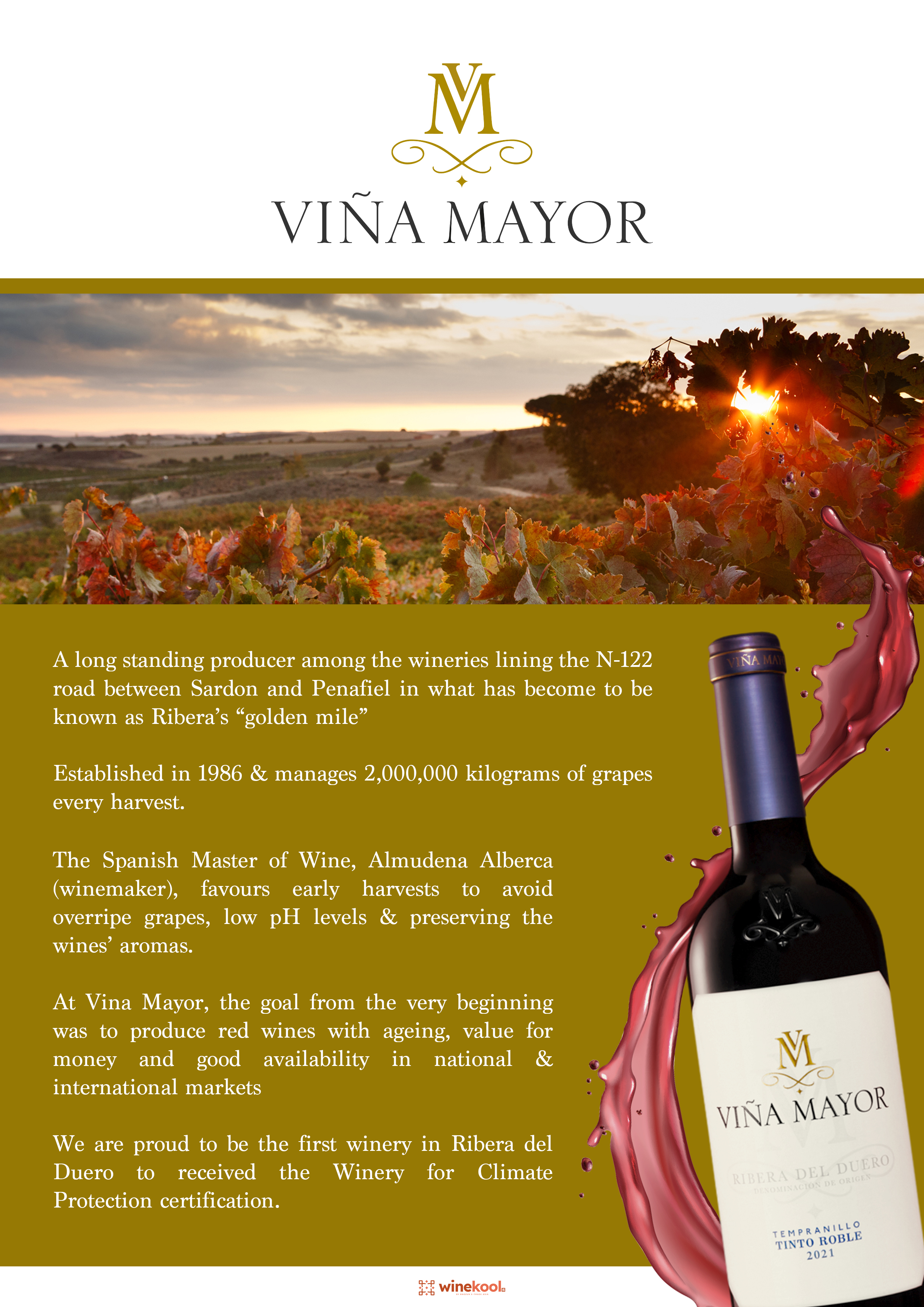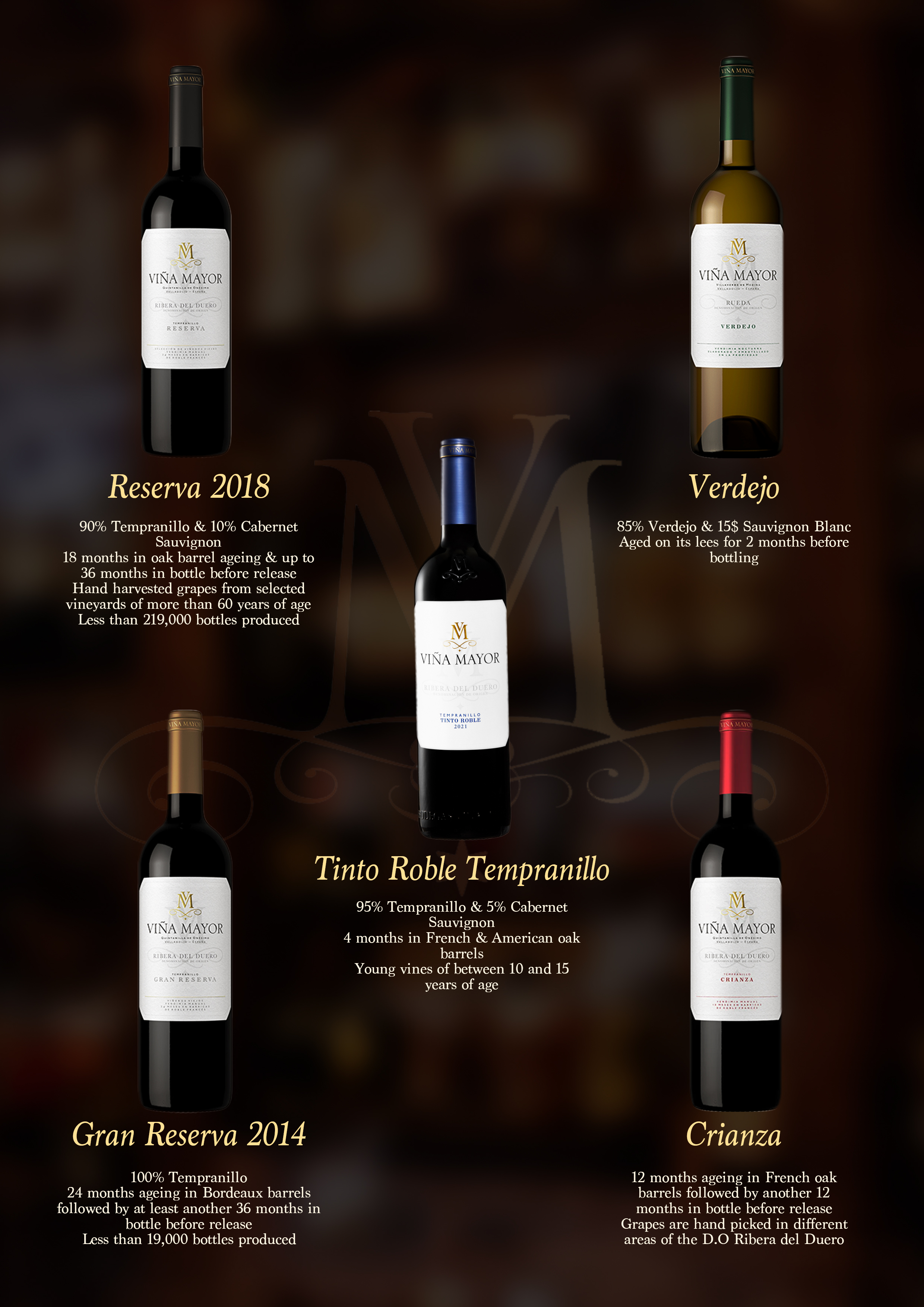 At Vina Mayor, the goal from the very beginning was to produce red wines with ageing, value for money and good availability in national & international markets
